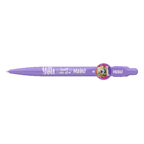Cicás motívumokkal díszített nyomógombos mechanikával működő golyóstoll 0,8 mm-es kék színű golyósbetéttel.