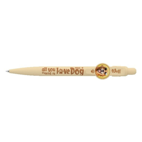 Kutyás motívumokkal díszített nyomógombos mechanikával működő golyóstoll 0,8 mm-es kék színű golyósbetéttel.