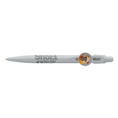 Kutyás motívumokkal díszített nyomógombos mechanikával működő golyóstoll 0,8 mm-es kék színű golyósbetéttel.