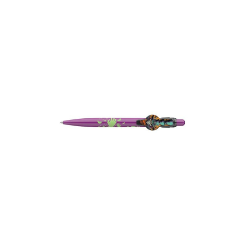 Golyóstoll ICO Halloween lila fekete Halloween motívumokkal díszített nyomógombos mechanikával működő golyóstoll. Cserélhető X-20-as betéttel. Golyóátmérő: 0,8 mm. Íráshossz: 2500 m. Írásszín: kék.