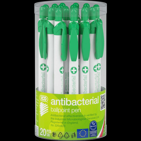1 kép ICO Golyóstoll nyomógombos antibakteriális műanyag test, 0,8mm, Ico, írásszín kék