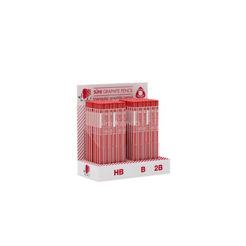 Grafitceruza display, HB, B, 2B, háromszögletű, ICO Süni Grafitceruza radírvég nélkül -háromszögletű ceruzatest -HB, B, 2B keménységű cseruzák vegyesen -csíkos design Gyártó/első EU forgalmazó elérhetősége: ICO ZRT 2013 Pomáz, ICO út 5.; EU post@ico
