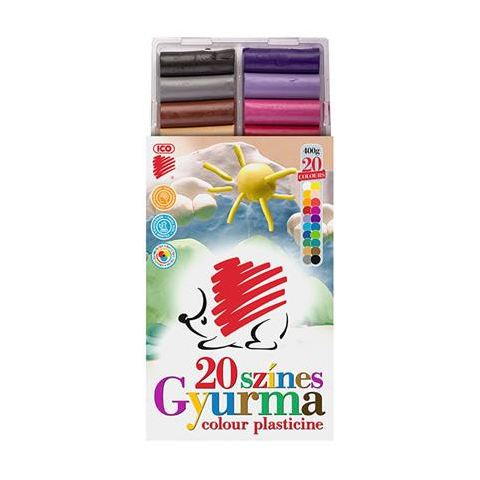 Gyurma, 400 g, ICO Süni, 20 különböző szín Puha, könnyen formázható méreganyagmentes gyurma. -keverhető színek -a gyurmázás segíti a finommotoros képességek fejlődését -kiszerelés: 20 db/doboz -súly: 400 g Gyártó/első EU forgalmazó elérhetősége: ICO