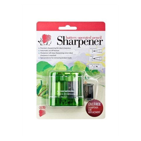 1 lyukú elemes hegyezőgép 2 db AA típusú ceruzaelemmel működő grafit- és színes ceruzák hegyezésérhez 4 féle színben, vegyesen: kék, zöld, narancs, vörös a szín nem választható! - garancia: fél év Gyártó/első EU forgalmazó elérhetősége: ICO ZRT 2013 Pom