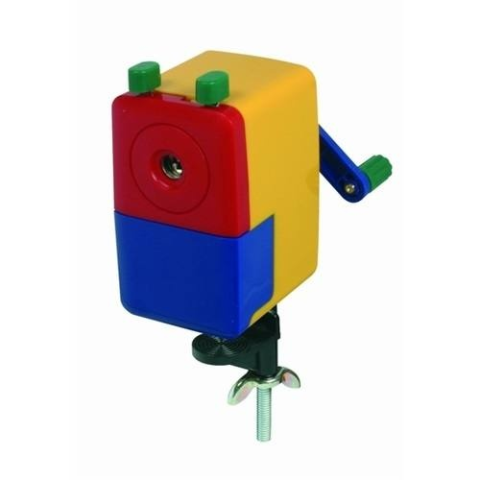Asztalra rögzíthető hegyezőgép, fém befogóval és hegyező szerkezettel, normál grafit- és színes ceruzák hegyezéséhez.