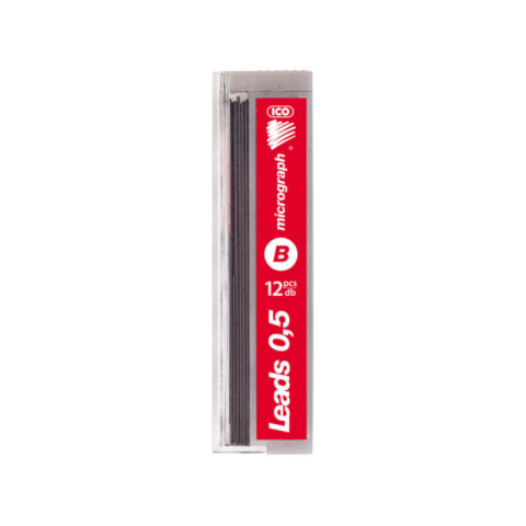 Kiváló minőségű Micrograph B irónbél. Magas fokú törésbiztonság, háromféle keménységben kapható. Vonalvastagság: 0,5 mm. Keménység: B. Kiszerelés: 12 szál/csomag. .