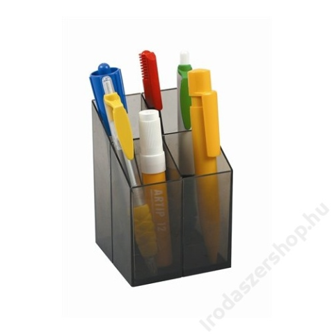 Írószertartó, ICO, füstszínű (TICITFK) - szögletes forma - négy tárolórekesz - füstszínű - tartozékok nélkül - méret: 11 x 7 x 7 cm Gyártó/első EU forgalmazó elérhetősége: ICO ZRT 2013 Pomáz, ICO út 5.; EU post@ico.eu www.ico.eu