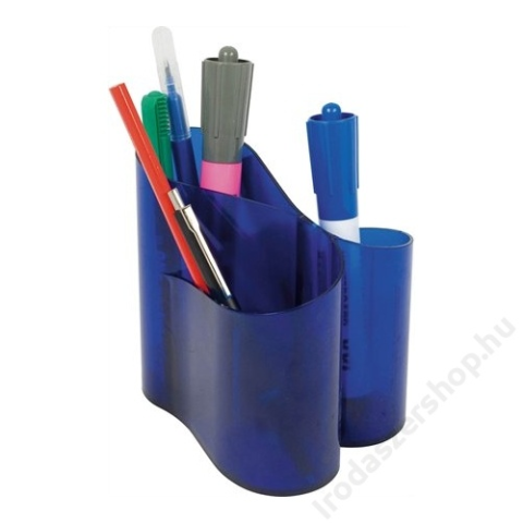 Írószertartó, ICO Lux, áttetsző kék (TICITLUXK) - asztali írószertartó - 3 tárolórésszel - tartozékok nélkül - 30%-ban újrahasznosított műanyag alapanyagból készült Gyártó/első EU forgalmazó elérhetősége: ICO ZRT 2013 Pomáz, ICO út 5.; EU post@ico.eu