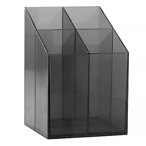Írószertartó ICO transzparens fekete Asztali írószertartó szögletes kivitelben, 4 tárolórekesszel. Feltöltés nélkül!