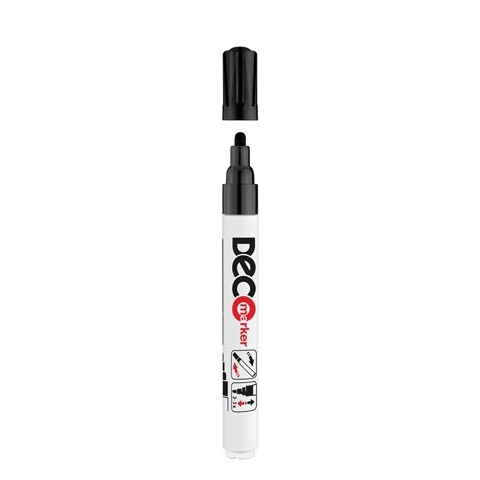 - - műanyag testű, kerekített heggyel ellátott marker, - lakkszerűen fedő festékkel töltve - üveg, kerámia, műanyag, fém jelölésére, díszítésére alkalmas - gyorsan száradó festék - írásképe törlés-, víz-, fény- és hőálló - vonalvastagság: 2-4 mm