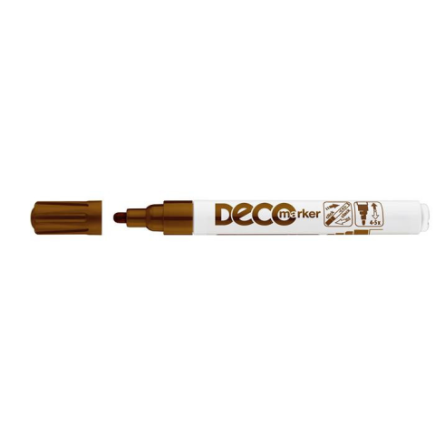 Lakkmarker, 2-4 mm, ICO Decomarker barna - műanyag testű, kerekített heggyel ellátott marker, - lakkszerűen fedő festékkel töltve - üveg, kerámia, műanyag, fém illetve szinte minden felület jelölésére, díszítésére alkalmas - gyorsan száradó festék - ír