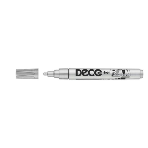 Lakkmarker, 2-4 mm, ICO Decomarker ezüst - műanyag testű, kerekített heggyel ellátott marker, - lakkszerűen fedő festékkel töltve - üveg, kerámia, műanyag, fém illetve szinte minden felület jelölésére, díszítésére alkalmas - gyorsan száradó festék - ír