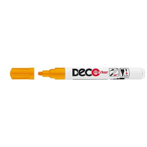 ICO DECO lakkmarker Vonalvastagság: 2-4 mm Szín: narancssárga Üveg, kerámia, műanyag, fém, illetve szinte minden felület jelölésére, díszítésére alkalmas, műanyag testű, kerekített csúccsal ellátott marker permanent, lakkszerűen fedő festékkel töltve.