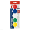 ICO Különböző színű, kerek, praktikus, jó minőségű, erős mágnes, fém-, ill. fehér táblákhoz. Iskolákban oktatás során, prezentációkon kiváló segítőtárs. Négy átmérővel, vegyes színekben. Csomagolása bliszteres.