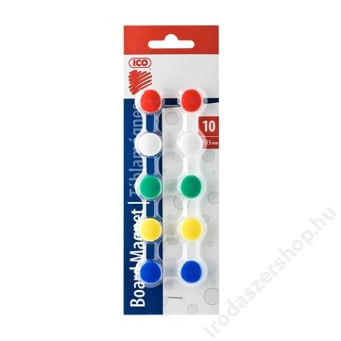 Mágneskorong, 15 mm, 10 db, ICO JY-15, 5 szín (TICTMJY15) - mágnestáblákhoz jól használható - acél táblafelületeken rögzíthető mágnes korongok - vegyes színekben - bliszteres csomagolás Gyártó/első EU forgalmazó elérhetősége: ICO ZRT 2013 Pomáz, ICO
