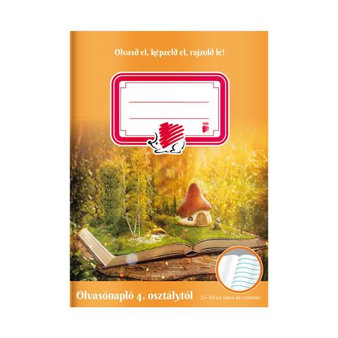Olvasónapló, tűzött, A5, 32 lap, 4-8. osztály, ICO Süni A/5 méretű 32 lapos általános iskolai olvasónapló, vidám színes kivitelben fiúknak és lányoknak egyaránt. A lapok egyik oldala vonalas, a másik pedig sima, ezért a fogalmazások megírásához, illetv