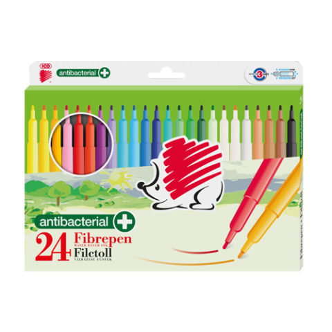 Antibakteriális rostirón vízbázisú festékkel töltve, átlevegőzős biztonsági kupakkal, rajzolásra, színezésre.A műanyag alkatrészek antibakteriális védelmet adó Biomaster ezüst-ionokat tartalmaznak (biocid hatóanyag: ezüst-foszfát üveg). Az ICO Antibakteriális termékei bizonyítottan baktériumölő tulajdonsággal rendelkeznek, a felszínen megtelepedett kórokozók 24 óra leforgása alatt, 99,9% hatékonysággal elpusztulnak.Az antibakteriális hatást az angliai Indu