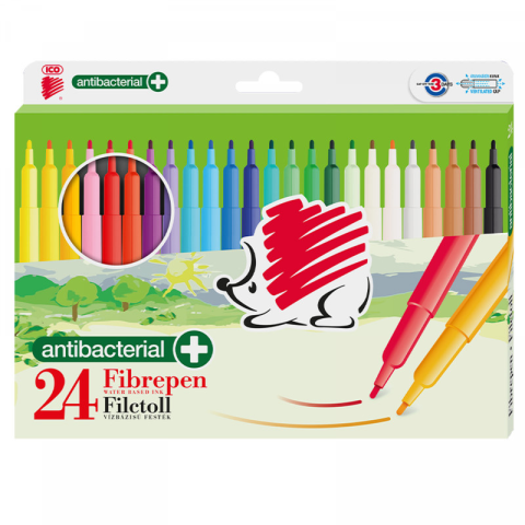 ICO 300 antibakteriális filctoll vízbázisú festékkel töltve, átlevegőzős biztonsági kupakkal, rajzolásra, színezésre. A műanyag alkatrészek antibakteriális védelmet adó Biomaster ezüst-ionokat tartalmaznak (biocid hatóanyag: ezüst-foszfát üveg). Az ICO a
