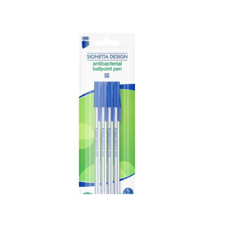 ICO Signetta Design antibakteriális kupakos golyóstoll - 0,7mm/Kék (4db/csomag) (9020035003) toll termékleírás