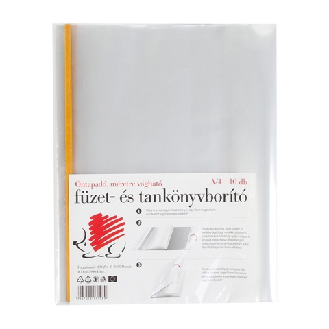 A borító öntapadó csíkkal vannak ellátva, színük víztiszta. Mérete lehetővé teszi, hogy minden nagyalakú füzethez és könyvhöz használni lehet.