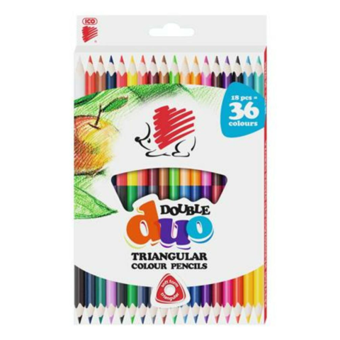 Színes ceruza készlet, kétvégű, háromszögletű, ICO Süni, 36 különböző szín (TICSUKK36) - kiváló minőségű, kitűnő rajztulajdonságokkal rendelkező kétvégű színes ceruza 18 /36 színben - a háromszögletű ergonomikus kialakításának köszönhetően kényelmes fo