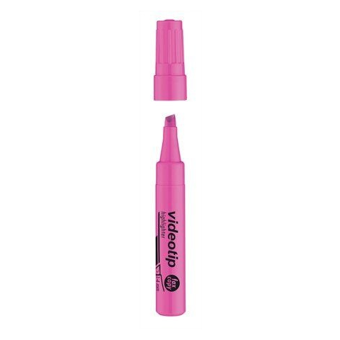Szövegkiemelő, 1-4 mm, ICO Videotip, rózsaszín - speciális fluoreszkáló tintával töltött szövegkiemelő - a kiemelt szöveg fénymásolható, faxolható - vágott hegy - vonalvastagság: 1-4 mm - a termék műanyag alkatrészei 30%-ban újrahasznosított alapanyago