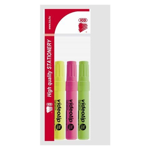 1 kép ICO Szövegkiemelő készlet, 1-4 mm, ICO "Videotip", 3 különböző szín