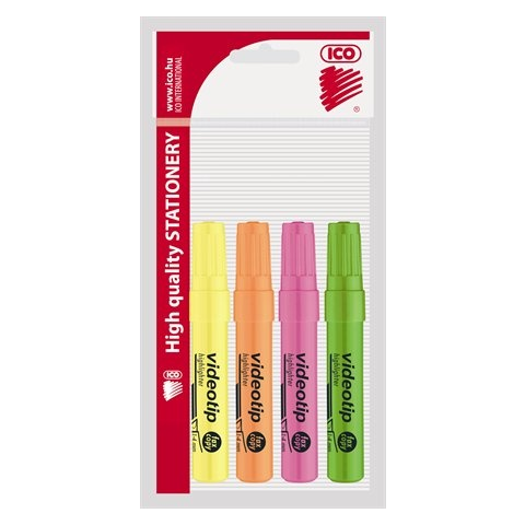 ICO Szövegkiemelő készlet, 1-4 mm, ICO "Videotip", 4 különböző szín filctoll, marker termékleírás