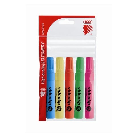 ICO Szövegkiemelő készlet, 1-4 mm, ICO "Videotip", 5 különböző szín filctoll, marker termékleírás