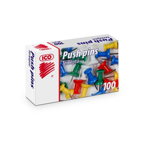 Térképtű, színes, 100 db, ICO - ideális parafa, textil és egyéb tűzhető táblákhoz - színes, műanyag fejű térképtű - vegyes színekben - a tű mérete: 10 mm - kartondobozos csomagolás Gyártó/első EU forgalmazó elérhetősége: ICO ZRT 2013 Pomáz, ICO út 5.