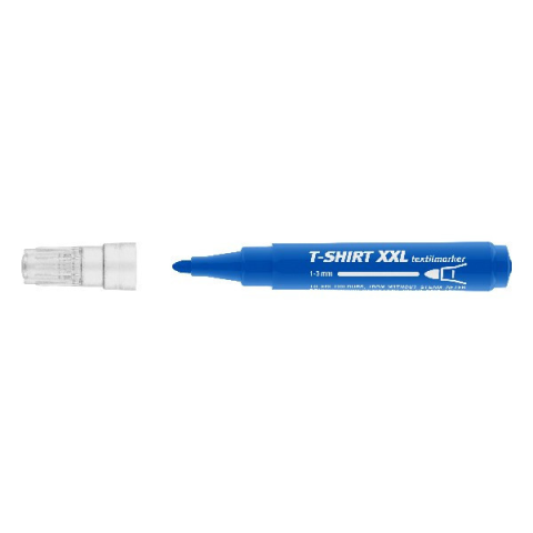 Textilmarker ICO T-Shirt kék XXL Textiliák pl.: pamut, selyem, vászon stb., ruhanázat pl.: tornacipő, póló, táska stb. dekorálására, írására, jelölésére alkalmas marker. Kerekített csúccsal, vízbázisú festékkel töltve, rendkívüli színtartóssággal és ma