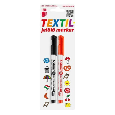 ICO Textilmarker ICO T-Shirt slim M fekete+piros 2db/bliszter filctoll, marker termékleírás