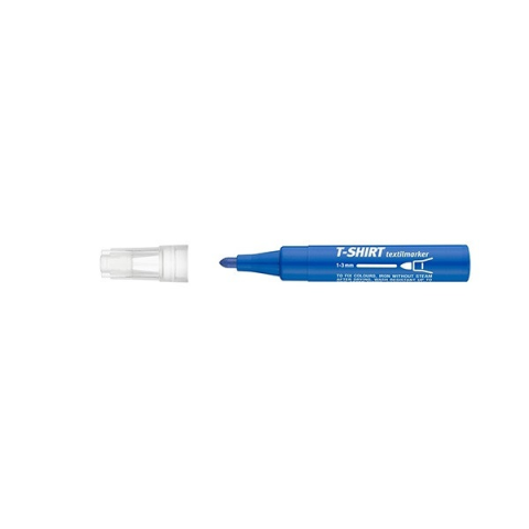 Textilmarker, textiliák pl:selyem,pamut,vászonra.Pl: tornacipő, póló, táska írására,jelőlésére alkalmas.Kerekített csúccsal, vízbázisú festékkel töltve, rendkívüli színtartóssággal és magas fényállósággal.A dekoráció rögzítése gőzmentes bevasalással történik. Rögzítés után 60 °C-ig mosható. Vonalvastagság: 1-3 mm.