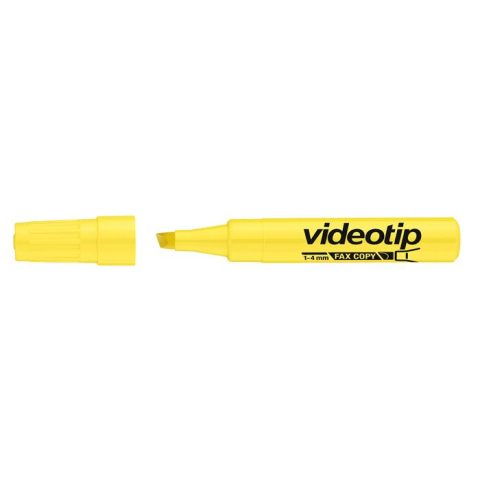 Szövegkiemelő Videotip sárga Írásvastagság: 1–4 mm Típus: Írásszín: sárga speciális, fluoreszkáló festékkel töltött szövegkiemelő a kiemelt szöveg fénymásolható, faxolható XXL: megnövelt élettartam a nagy méretű testnek köszönhetően