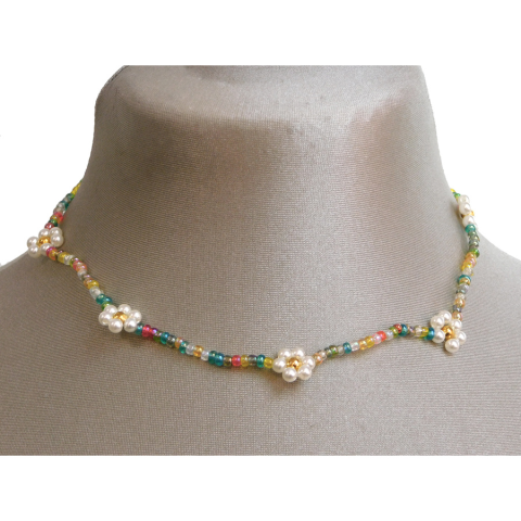 Színes Gyöngy nyaklánc 23cm