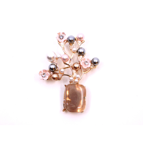 Arannyal Bevont Ezüst Bross Kék Gyémánttal és Fehér Topázzal, Y58902