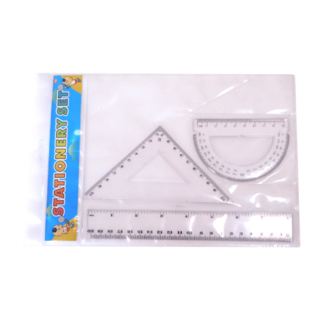Vonalzó készlet 3 darabos, 1 db 20 cm egyenes vonalzó, 1 db 45°-os 10 cm és szögmérő