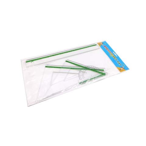 Vonalzó készlet 4 darabos, 1 db 30 cm egyenes vonalzó, 1 db 45°-os 15 cm vonalzó, 1db 60°-os 23 cm vonalzó, 1 db szögmérő