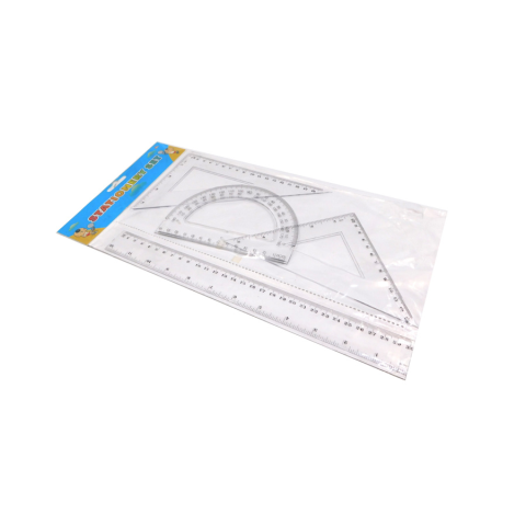 Vonalzó készlet 4 darabos, 1 db 30 cm egyenes vonalzó, 1 db 45°-os 13 cm vonalzó, 1db 60°-os 18 cm vonalzó, 1 db szögmérő