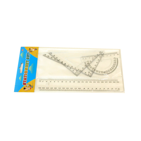 Vonalzó készlet 4 darabos, 1 db 20 cm egyenes vonalzó, 1 db 45°-os 10 cm vonalzó, 1db 60°-os 14 cm vonalzó, 1 db szögmérő