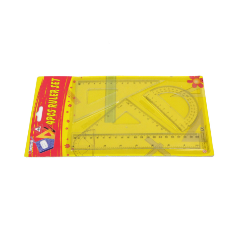 Vonalzó készlet 4 darabos, 1 db 20 cm egyenes vonalzó, 1 db 45°-os 10 cm vonalzó, 1db 60°-os 13 cm vonalzó, 1 db szögmérő