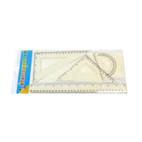 Vonalzó készlet 4 darabos, 1 db 30 cm egyenes vonalzó, 1 db 45°-os 13 cm vonalzó, 1db 60°-os 18 cm vonalzó, 1 db szögmérő