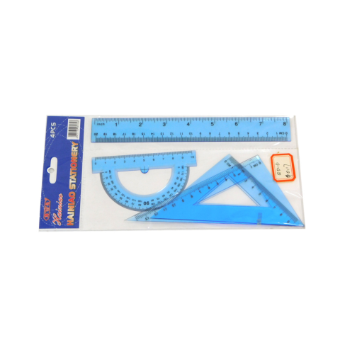 Vonalzó készlet 4 darabos, 1 db 20 cm egyenes vonalzó, 1 db 45°-os 10 cm vonalzó, 1db 60°-os 13 cm vonalzó, 1 db szögmérő