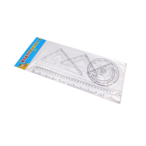 Vonalzó készlet 5 darabos, 1 db 30 cm egyenes vonalzó, 1 db 45°-os 10 cm vonalzó, 1db 60°-os 14 cm vonalzó, 1 db szögmérő 180°, szögmérő 360°