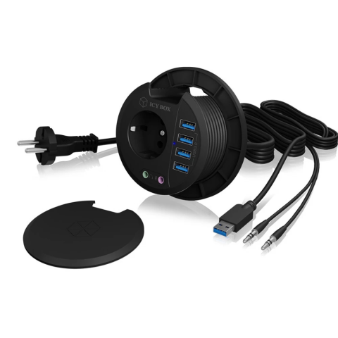 ICY BOX IB-HUB1430 csatlakozóaljzat Fekete hosszabbító, elosztó 1 kép