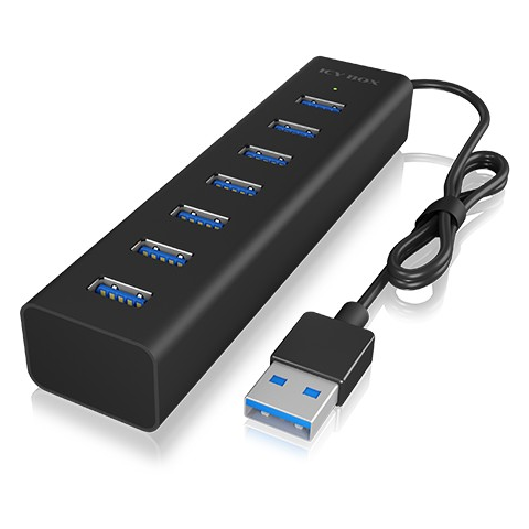 ICY BOX USB3.0 7Port Aktív, Tápegységgel, Fekete (IB-HUB1700-U3)