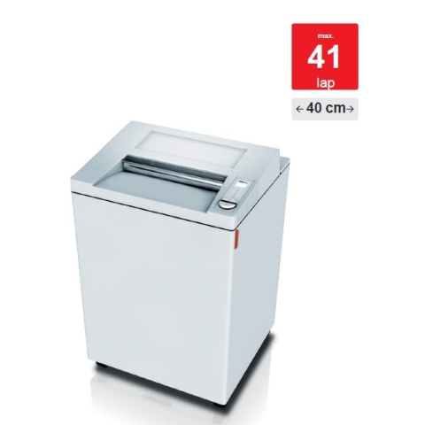 IDEAL 4002 széles bedobónyílású iratmegsemmisítő, 39-41 lap, 6mm csíkra vágó IDEAL 4002 széles bedobónyílású iratmegsemmisítő, 39-41 lap, 6mm csíkra vágó Széles bedobónyílású irodai iratmegsemmisítő nagyobb formátumú papírok megsemmisítésére, ECC ka