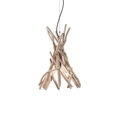 Egyedi kialakítású, fémvázas függesztett lámpa, natúr fa karokból készült stílusos lámpatesttel, mely eredetiséget és kényelmes fényt kölcsönöz étkezőjének, hálószobájának, szállodájának vagy éttermének...