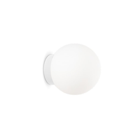 Minőségi anyagokból készült falilámpa, amely fém talp rögzítőrendszerrel van ellátva, és fehér savmaratott fúvott üvegből készült kerek lámpabúra egészíti ki...