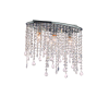 Szép kivitelű kristálylámpa, melynek kerete kiváló minőségű fémből készült, fényes króm bevonattal. A dizájnt átlátszó medálok teszik teljessé, amelyek több különböző alakú vágott kristálygyöngyökből állnak, és cseppekkel vannak befejezve...
